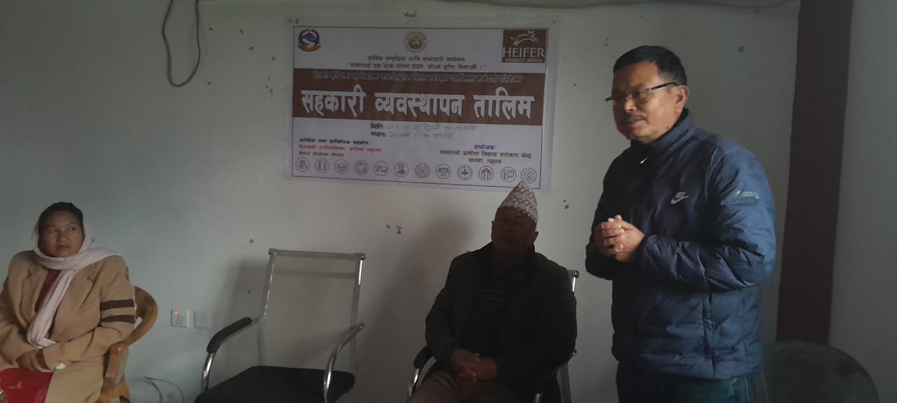 ऐरावती गाँउपालिकाको आर्थिक सहयोग,हेफर प्रोजेक्ट नेपालको प्राविधिक सहयोगमा मल्लरानी ग्रमिण विकास सरोकार केन्द्र प्यूठानको सञ्चालनमा ऐरावती गाउपालिकामा सञ्चालन भएको कृषि तथा पशु विकासमा आधारीत साना किसान तथा युवा उद्यमशिलता विकास कार्यक्रम अन्र्तरगत सञ्चालित सहकारी व्यबस्थापन तालिम माघ १ गते सम्म सञ्चालन हुने परीयोजना संयोजक नेत्र प्रसाद मरासिनीले बताउनुभयो ।