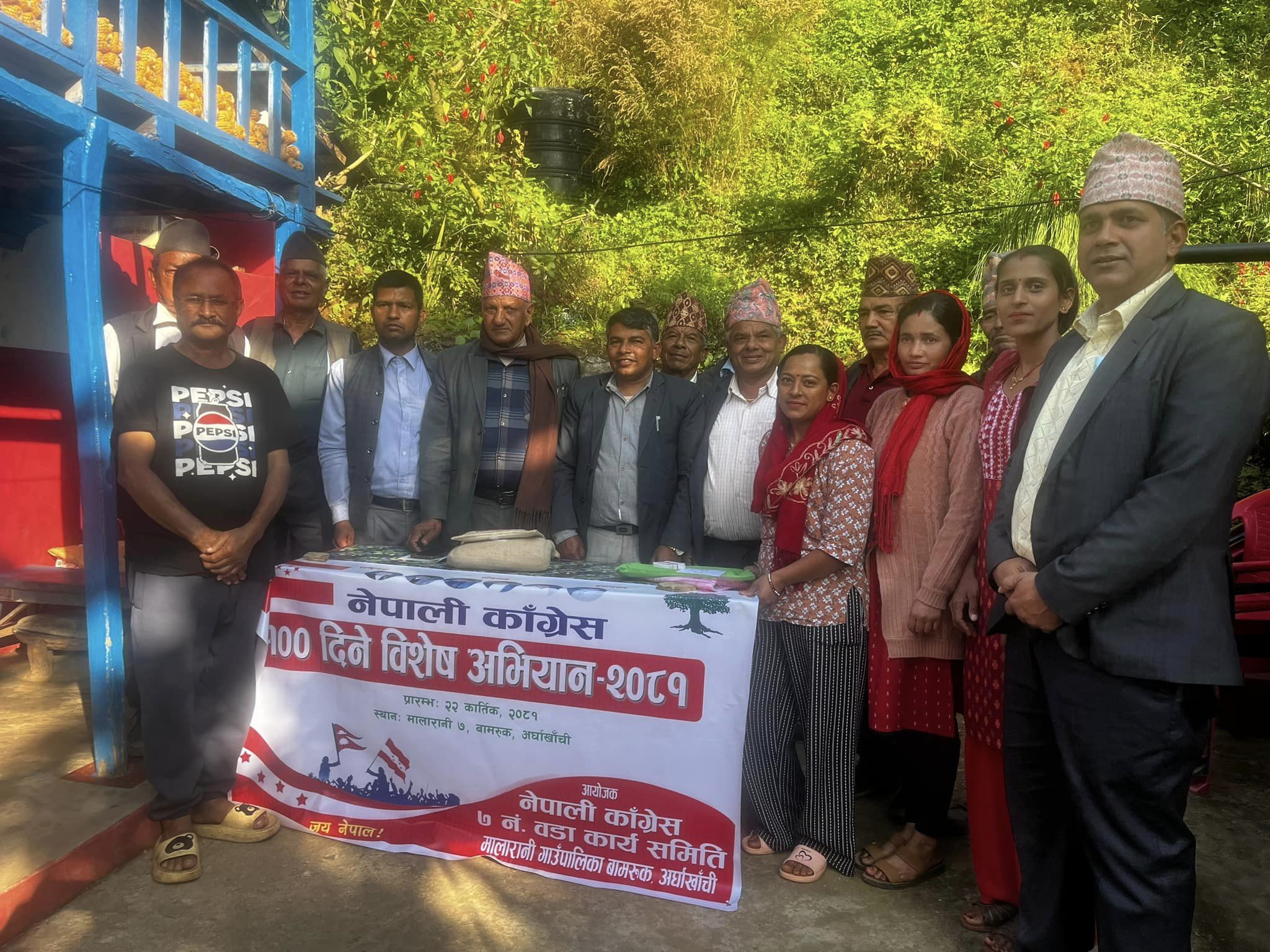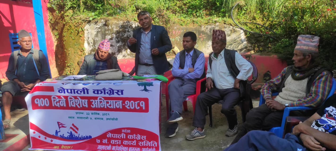 सन्धिखर्क । नेपाली कांग्रेस अर्घाखाँचीको पार्टी सङ्गठन सुदृढीकरणको सयदिने अभियान अन्तर्गत मालारानी गाउँपालिका वडा नम्बर ७ बामरुकमा सम्पन्न भएको छ । अभियानमा खटिनुभएका कांग्रेस मालारानी गाउँपालिका सभापति सोभाखर खनालले यो अभियानले कांग्रेसका नेता तथा कार्यकर्तालाई अभियानले एक ढिक्का बनाउने बताउनुभयो ।