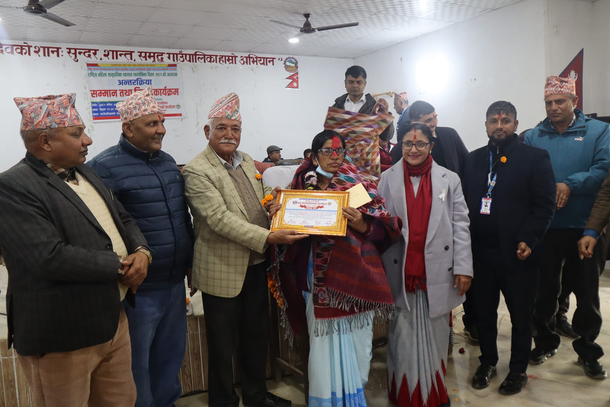 छत्रदेव गाउँपालिकामा स्वयंसेविका नगद सहित सम्मानीत