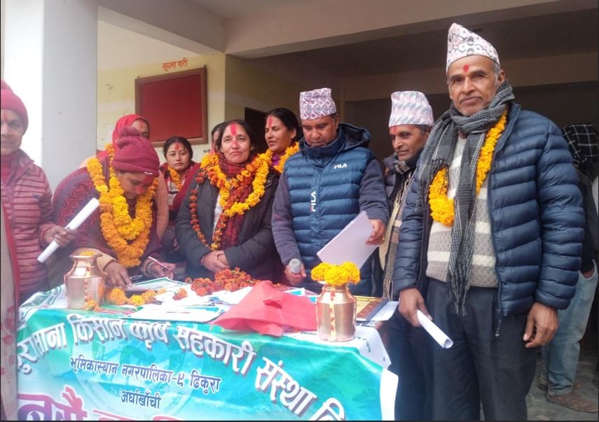 लक्ष्मण घिमिरे,सन्धिखर्क । ढिकुरा साना किसान कृषी सहकारी संस्थाको वार्षिक साधारणसभा तथा अधिवेशन सम्पन्न भएको छ ।भुमिकास्थान नगरपालिका वडा नम्बर ९, ढिकुरामा रहेको साना किसानले आफ्नो नवौं साधारण सभा सम्पन्न गर्नुका साथै नयाँ नेतृत्व चयन गरेको छ । मिना मरासिनी भट्टराईको अध्यक्षतामा ९ सदस्सिय सञ्चालक समिति गठन गरिएको शाखाका प्रबन्धक मदन गैरेले जानकारी दिए ।