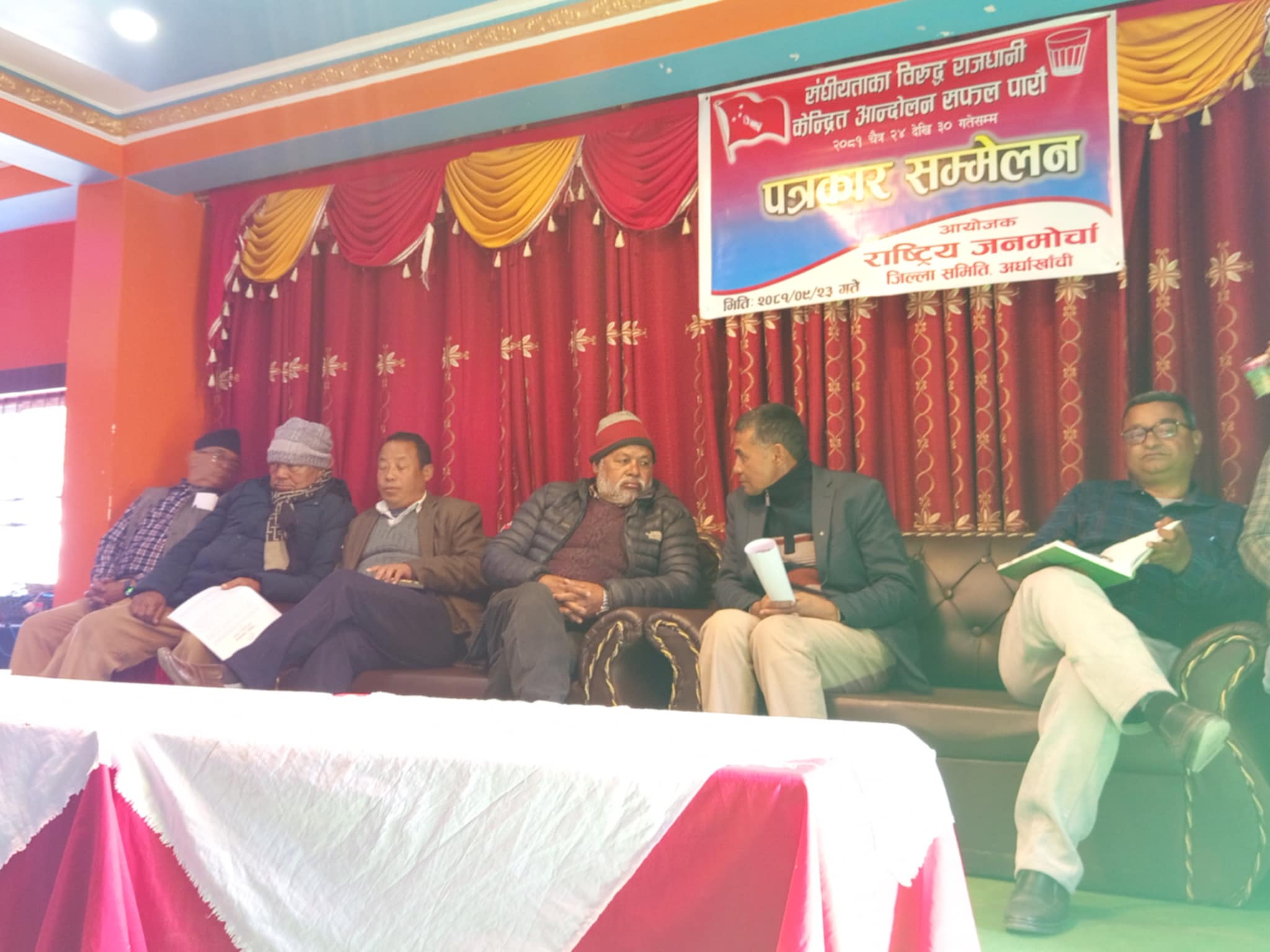 सागर महत,सन्धिखर्क।राष्ट्रिय जनमोर्चाले संघीयता विरुद्ध राजधानी केन्द्रित आन्दोलन गर्ने भएको छ।आउदो चैत्र २४गतेबाट ३०गते सम्म एक हप्ताको आन्दोलन गर्ने घोषणा गरेको छ।
