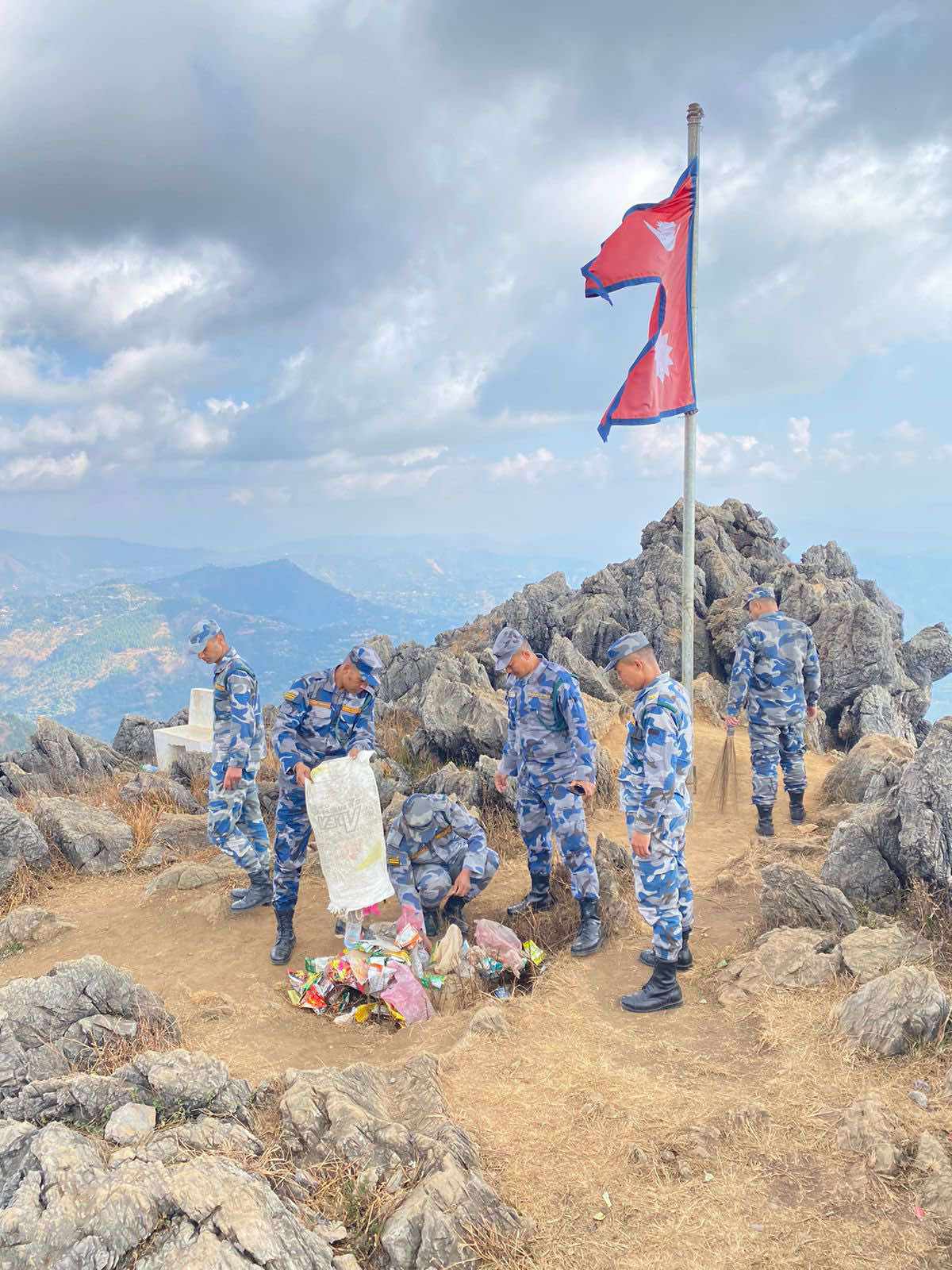 अर्घाखाँचीकाे पर्यटकीय स्थल ढुंगे बगैंचामा सशस्त्र प्रहरीद्वारा सरसफाइ