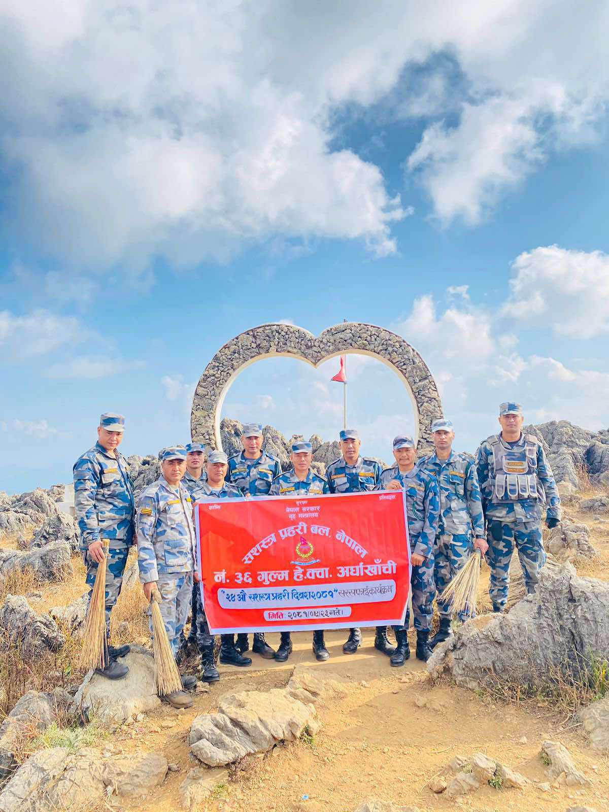 २४ औ सशस्त्र प्रहरी दिवसको पुर्व सन्ध्यामा सशस्त्र प्रहरीको ३६ नम्वर गुल्म अर्घाखाँचीले पर्यटकीय स्थल ढुंगे बगैंचामा सरसफाइ गरेको डिएसपी भिमसेन बोहोराले बतााउनुभयो । बगैचा हेर्न आउने आन्तरिक तथा बाह्य पर्यटकलाई आकर्षित गर्न सन्धिखर्कबाट गएको सशस्त्र प्रहरीको टोलीले सरसफाइ गरेर चिटिक्क पारेको डिएसपी बोहोराकाे भनाइ छ।