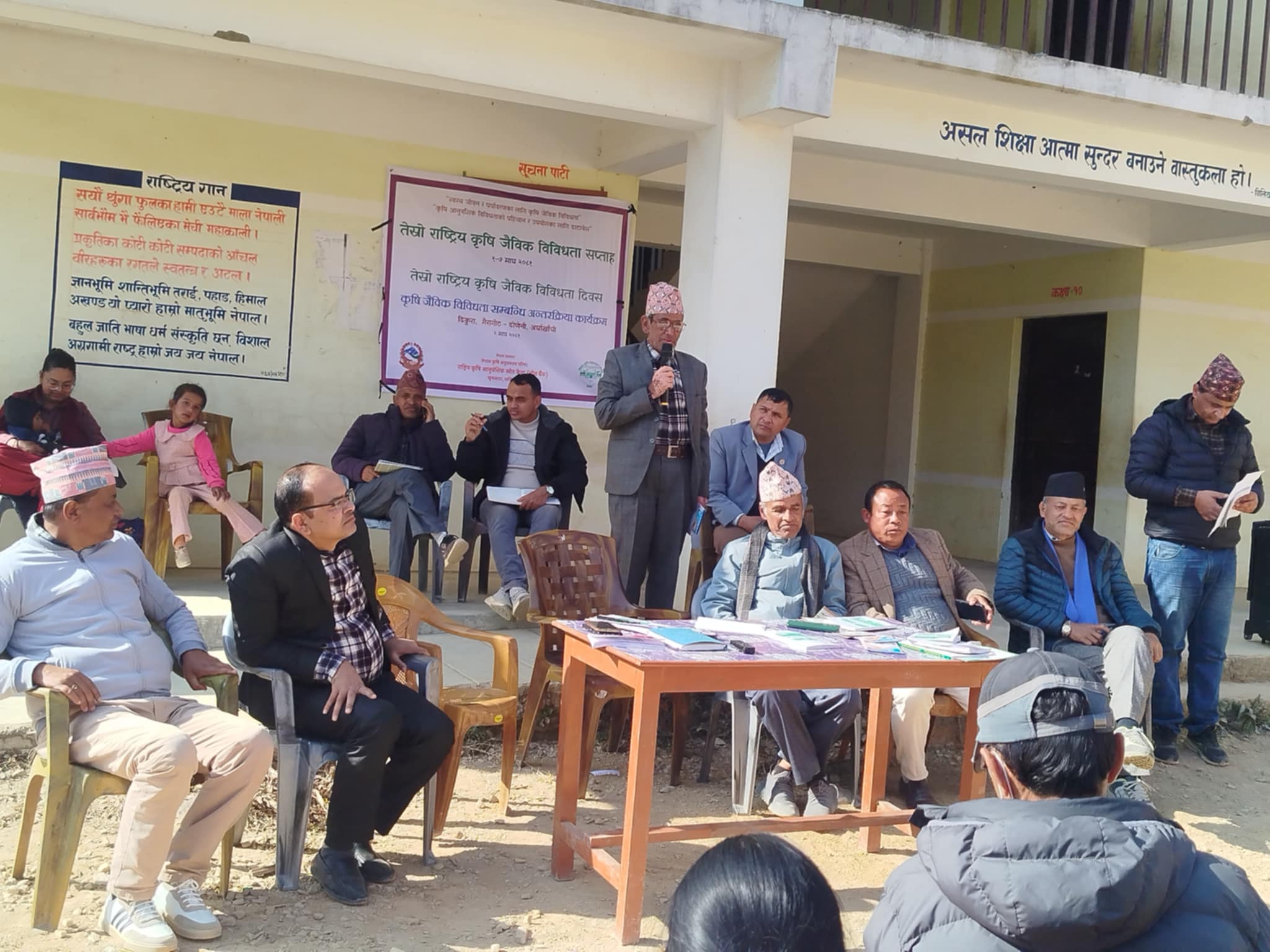 रुद्रमणि भुसाल,सन्धिखर्क ।स्वास्थ्य जीबन र पर्यावरणका लागि कृषि जैबिक विविधता कृषि आनुवंशिक विविधता पहिचान र उपयोगिताका लागि डाटाबेश भन्ने मुख्य नाराका साथ तेसो राष्ट्रिय कृषि जैबिक विविधता सप्ताह कार्यक्रम अन्तरगत कृषि जैबिक विविधता सम्बन्धि अन्तरक्रिया कार्यक्रम भुमिकास्थान नगरपालिकाको वार्ड नम्बर ९ ढिकुरामा सम्पन्न भएको छ ।