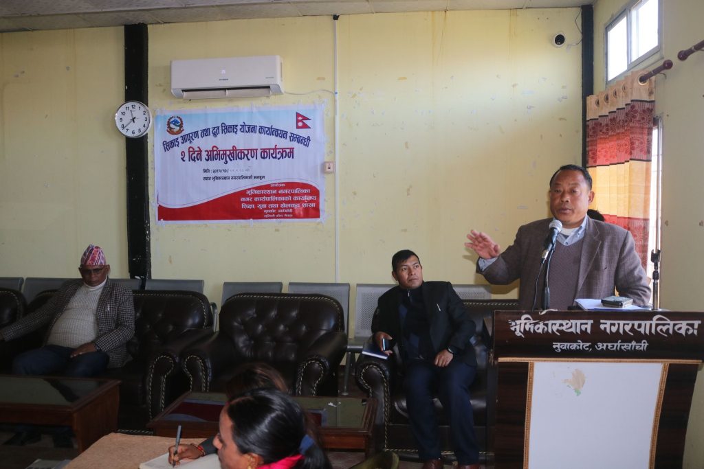 अर्घाखाँचीको भूमिकास्थान नगरपालिकाले सामुदायिक विद्यालयका ६५ जना शिक्षकका लागि बिशेष तालिम सुरु गरेको छ । सिकाई आपुरण तथा दु्रत सिकाई योजना कार्यान्वयनको निम्ती सहजीकरणका लागि भूमिकास्थान नगरपालिकाले यस्तो तालिम दिन थालेको हो ।तालिममा कक्षा ३ देखि ८ कक्षा सम्मका ६५ जना बिषयगत शिक्षकहरुको सहभागितारहेको छ । एउटा समूहमा ३३ र अर्को समुहमा ३२ जना गरि ६५ जना शिक्षकलाई दुई/दुई दिनको तालिम दिइने भूमिकास्थानका शिक्षा शाखा प्रमुख तुवलालसापकोटाले जानकारी दिनुभएको छ ।