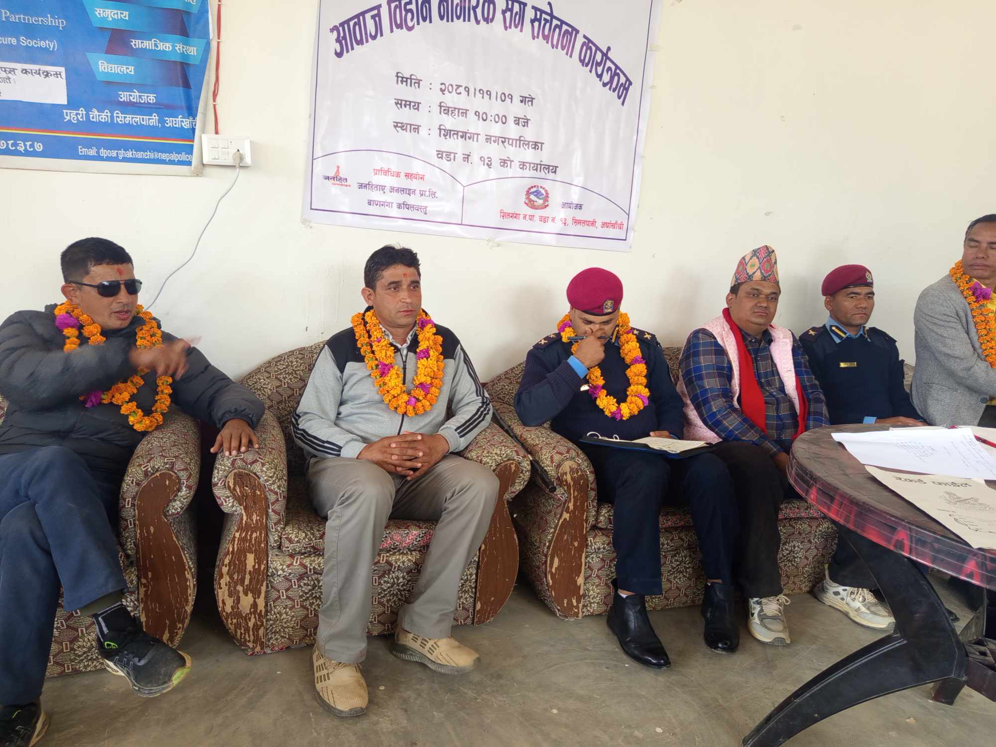 पत्रकार महासंघ लुम्बिनी प्रदेश कोषाध्यक्ष प्रेमनारायण आचार्यले वडा तहबाट हुने सेवा प्रवाह नागरिक मैत्री हुन आवश्यक रहेको बताउनुभयो ।कार्यक्रम जिल्ला प्रहरी कार्यालय अर्घाखाँचीका प्रहरी नायव उपरिक्षक चक्र बहादुर मल्लको प्रमुख आतिथ्यता शितगंगा १३ का वडा अध्यक्ष दुर्गा बहादुर बिसीको अध्यक्षता इलाका प्रहरी कार्यालय ठाडाका प्रहरी निरिक्षक रविन्द्र चन्दको अपराध नियन्त्रण सम्बन्धी कार्यपत्र प्रस्तुती र चेतन विष्टको संचालनमा सम्पन्न भएको हो।