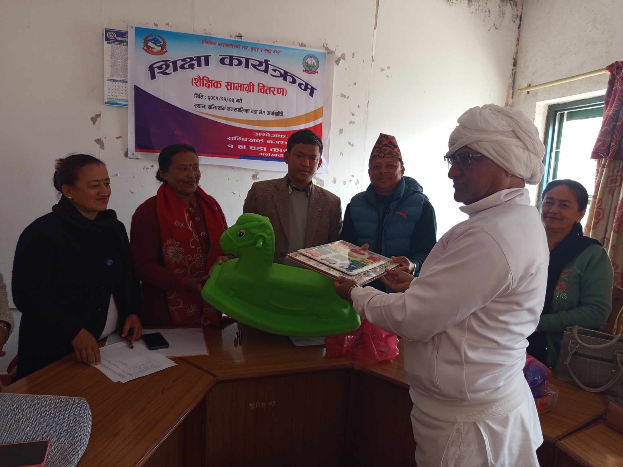सागर महत,सन्धिखर्क ।अर्घाखाँचीको सन्धिखर्क नगरपालिका वडा नम्बर १ ले शैक्षिक तथा खेल सामाग्री मागको आधारमा विद्यालयलाई हस्तान्तरण गरेको छ ।विद्यार्थीलाई पठनपाठन गराउन सहजहोस भनेर हस्तान्तरण गरिएको हो ।