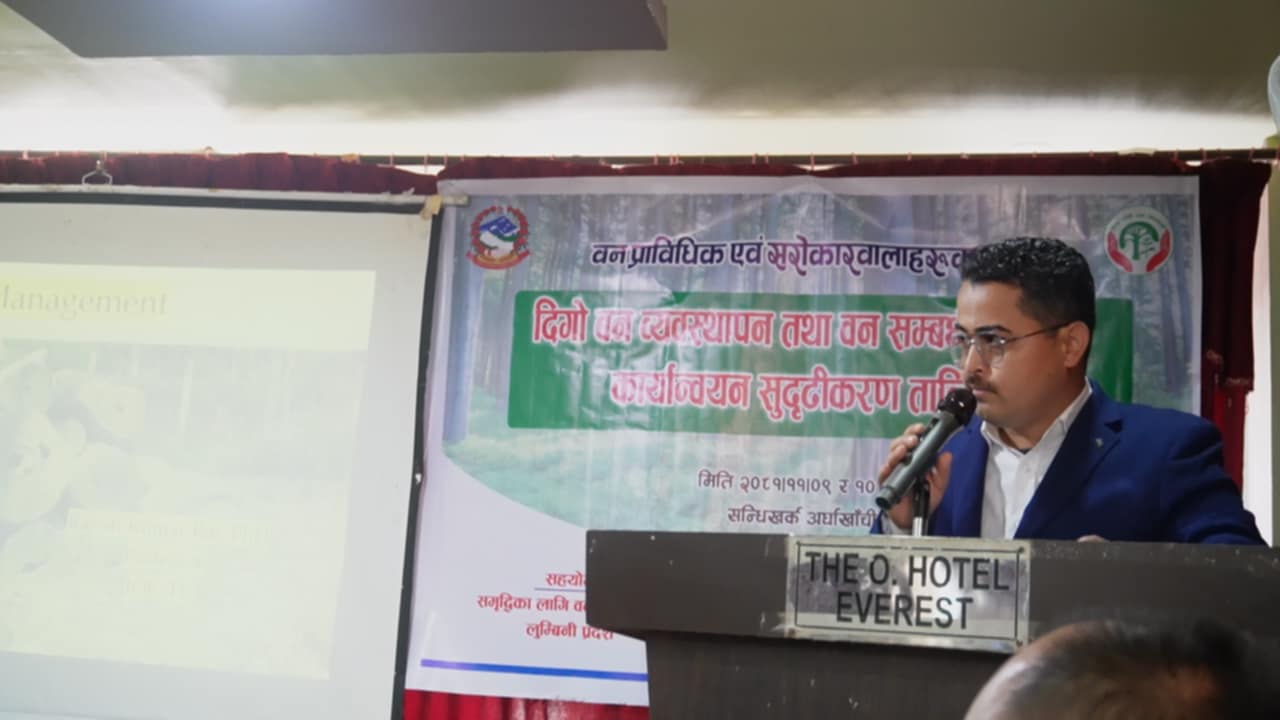 वन प्राविधिक एवं सरोकारवालाहरुका लागि दिगो वन व्यवस्थापन सुदृढीकरण तालिम शुरु भएको छ ।कार्यक्रममा दिगो वन व्यवस्थापनको आर्थिक प्रभाव सम्बन्धी परिचय, विभिन्न स्रोतवाट प्राप्त गरीएका अध्ययन सामग्रीहरु, अध्ययनको उद्देश्य, अध्ययनका सीमाहरु, विध्यमान नीति, कानुनहरु, प्राकृतिक स्रोतको रुपमा वनको विविध आयामहरुको बारेमा समेत समीक्षा गरिने सिनियर डिभिजन वन अधिकृत मोहन प्रसाद श्रेष्ठले बताउनुभएको छ।