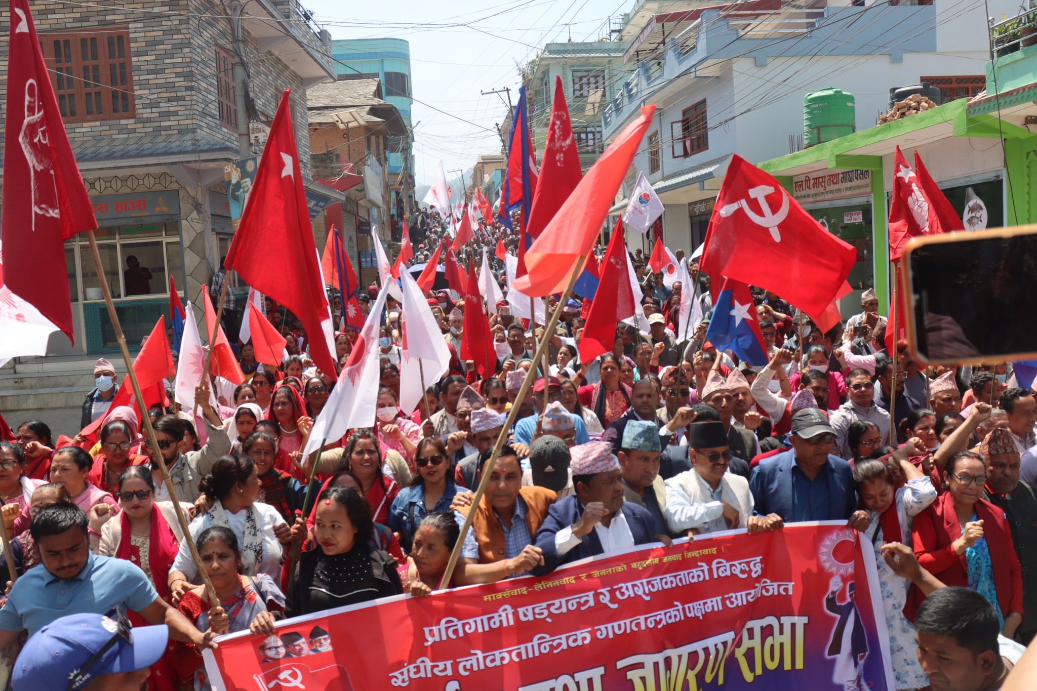 प्रतिगामी षडयन्त्र र अराजकताको विरूद्व एमालेको सन्धिखर्कमा सडक र्याली