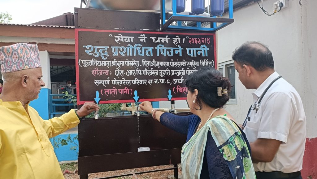 अर्घाखाँची अस्पतालमा माता र पिताको स्मृतिमा शुद्ध प्रशोधित पिउने पानीको ट्यांकी प्रदान