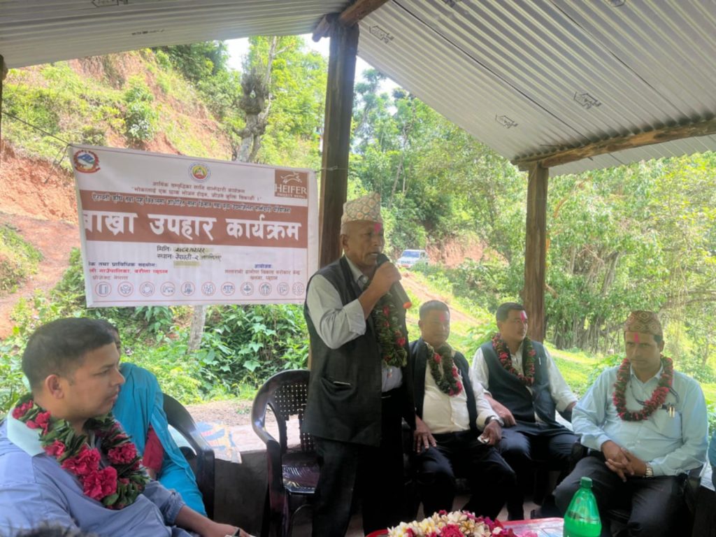 बाख्रा पालनको सम्भावना र कृषकको आवश्यकता लाई महसुस गरी बाख्रा वितरण गरीएको भन्दै उहाले आगामी बर्ष उत्पादन तथा उत्पादकत्व बृद्धि हुनेमा आफुहरु विश्वस्त रहेको बताउनुभयो ।सोहि कार्यक्रममा वडा अध्यक्ष भिमेश घर्तिले साना किसानको आर्थिक अबस्था परीवर्तन गर्न पालिकाले चालेको कदममा किसानको हातेमालो भएमा मात्र कार्यक्रम सफल हुने बताउनुभयो ।बाख्रा प्राप्त गरेछि समुह सदस्यहरुले आफुले पाएको बाख्रा बाट उत्पादन बृद्धि गर्दै आगामी दिनमा आफुजस्तै अन्य किसानलाई उपहारको रुपमा बाख्रा उपहार गर्न आफुहरु तयार हुने बताएका थिए ।