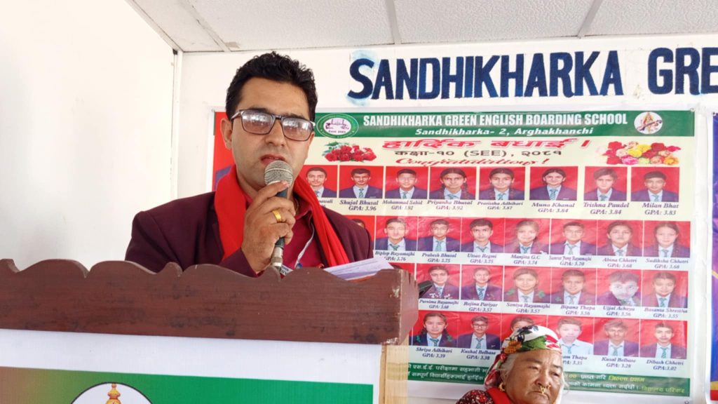 सन्धिखर्क ग्रिन बोर्डिङले राखेको एसईईमा सहभागी विद्यार्थी सम्मान कार्यक्रममा उहाँले यस्तो बताउनुभएको हो ।यस्तै नगरपालिका पनि शैक्षिक गुणस्तर सुधारको क्रममा लागेको बताउनुभयो ।