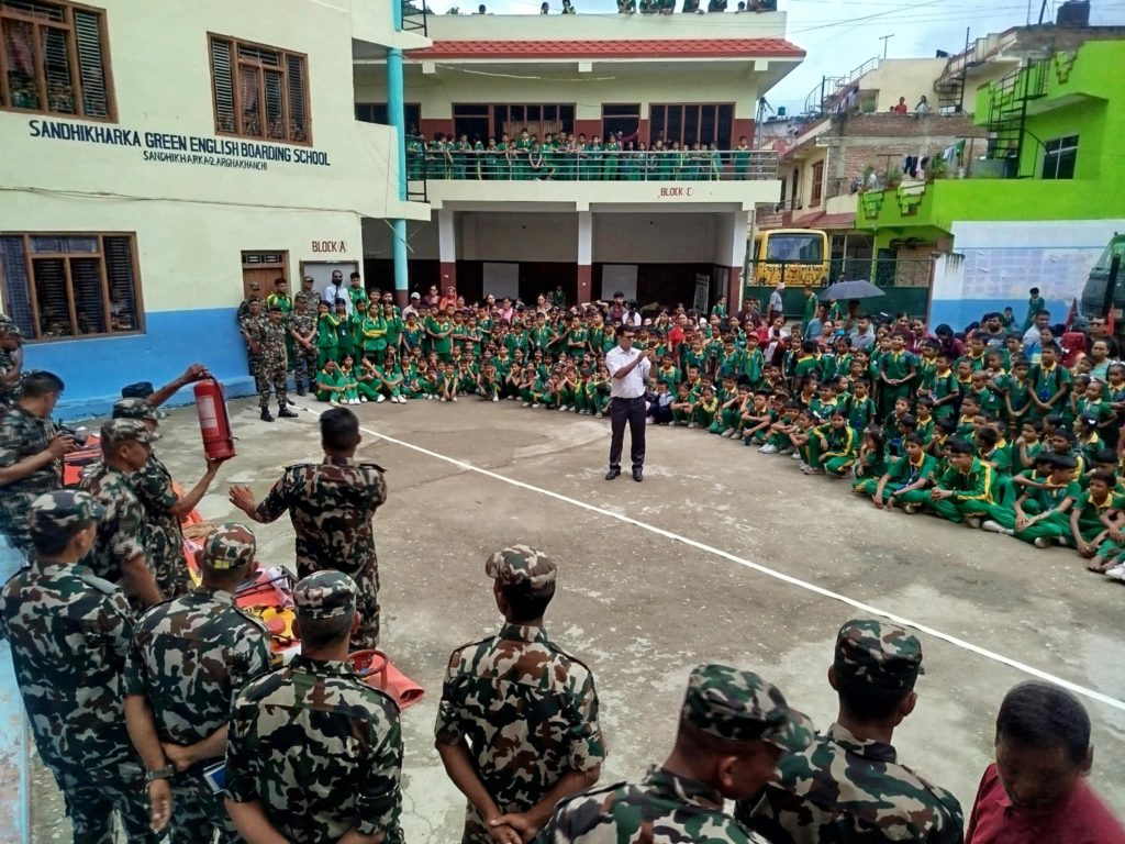 कार्यक्रममा वीरभद्र जंग गुल्म अर्घाखाँचीका सेनानी प्रमुख रिक्कि पाण्डेले भूकम्प ,आगलागी, बाढी पहिरो जस्ता घटनामा सबैभन्दा पहिला समुदाय नै पर्ने भएका कारणले त्यसबाट बच्न के कस्ता उपायहरू अपनाउन सकिन्छ , यदि विपतमा परिहाले पहिला आफू सुरक्षित रहँदै आफ्नो टोल छिमेक र समुदायलाई समेतकसरि सहयोग गर्न सकिन्छ भन्ने विषयमा ग्रीन इङ्ग्लिस बोर्डिङका विद्यार्थी अभिभावकहरूलाई आज प्रशिक्षण प्रदान गरेको जानकारी दिनुभयो ।