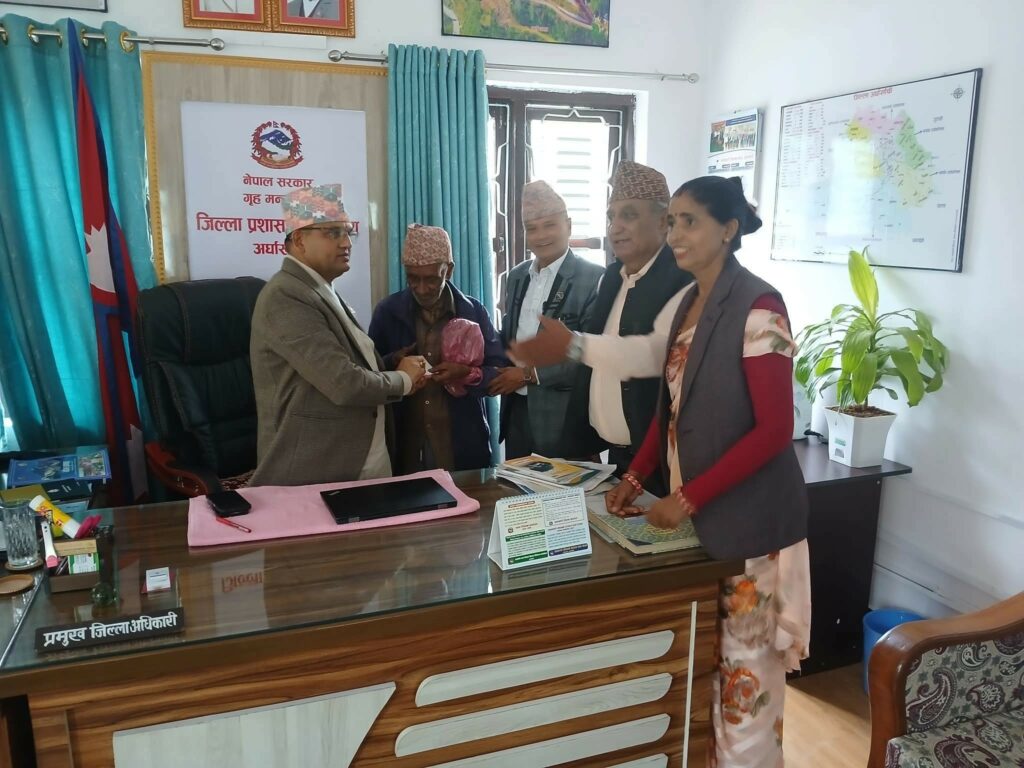 जिल्लाको छत्रदेव गाउँपालिका वडा नम्बर १, चिदीका खन्नेबास पाँडेटोल निवासी ७४ वर्षीय मुक्तीराम आचार्यलाई प्रमुख जिल्ला अधिकारी गोपालप्रसाद अर्याल लगायको सहभागीतामा प्रदान गरिएको जिल्ला प्रशासन कार्यालय अर्घाखाँचीले जनाएको छ ।