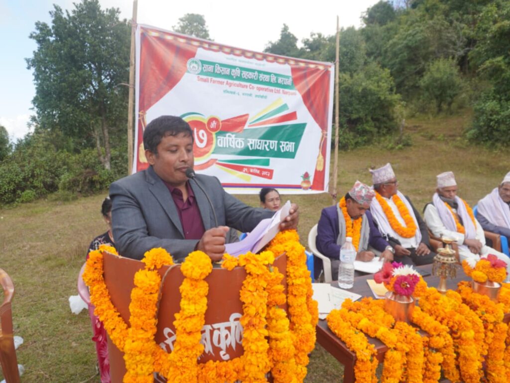 शेयर सदस्य लगायतको सहभागीता रहेको कार्यक्रम साना किसान कृषि सहकारी संस्था लिमिटेड नरपानीका कम्प्युटर अपरेटर प्रकाश महत्राको संचालनमा सम्पन्न भएको हो