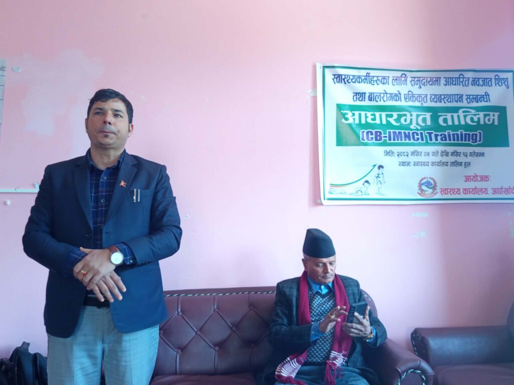 स्वास्थय कार्यालय अर्घाखाँचीको आयोजनामा स्वास्थ्यकर्मीहरूका लागि समुदायमा आधारित नवजात तथा बालरोगको एकिकृत व्यबस्थापन सम्बन्धी आधारभुत तालिम सम्पन्न भएको छ।