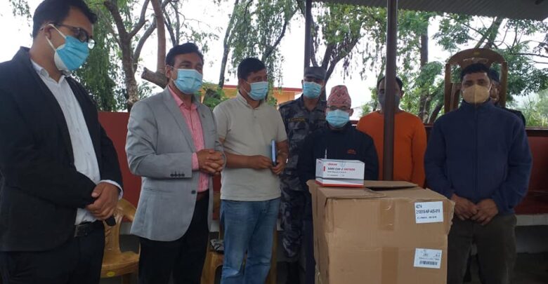 मन्त्री रायमाझीले १७ थान अक्सिजन सिलिन्डर ,अक्सिजन कन्सटेटर ४ थान , डिजिटल थर्मोमिटर ४ थान, एन्टिजेन कीट ६५० थान लगायतका स्वास्थ सामाग्री प्रमुख जिल्ला अधिकारी बिष्णु पौडेललाई हस्तान्तरण गर्नुभएको छ ।