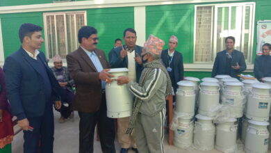 सन्धिखर्क नगरपालिकाद्वारा ७५प्रतिशत अनुदानमा किसान लाई मिल्क क्यान वितरण